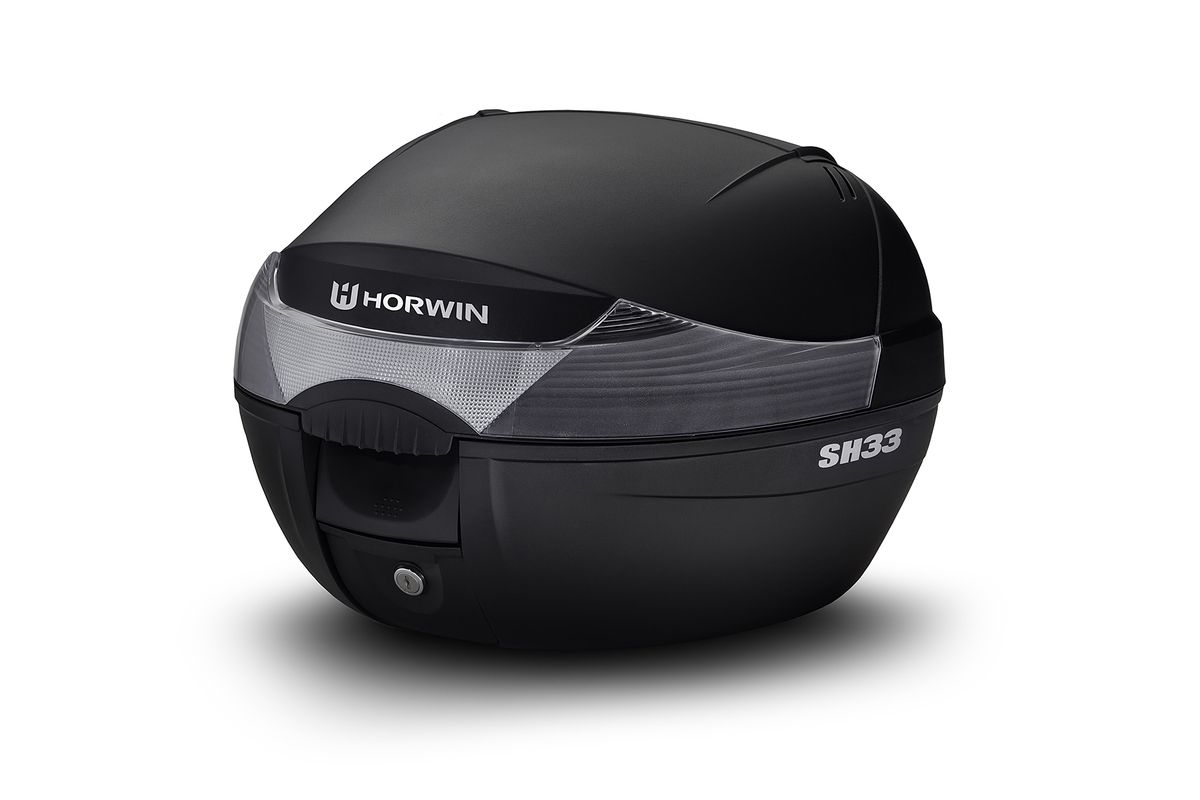 Тази багажен куфар за мотор събира една full face каска и ръкавици. Комплектът включва и универсална метална основа за закрепване към скутери Horwin или всеки друг мотор. Произведен от SHAD.